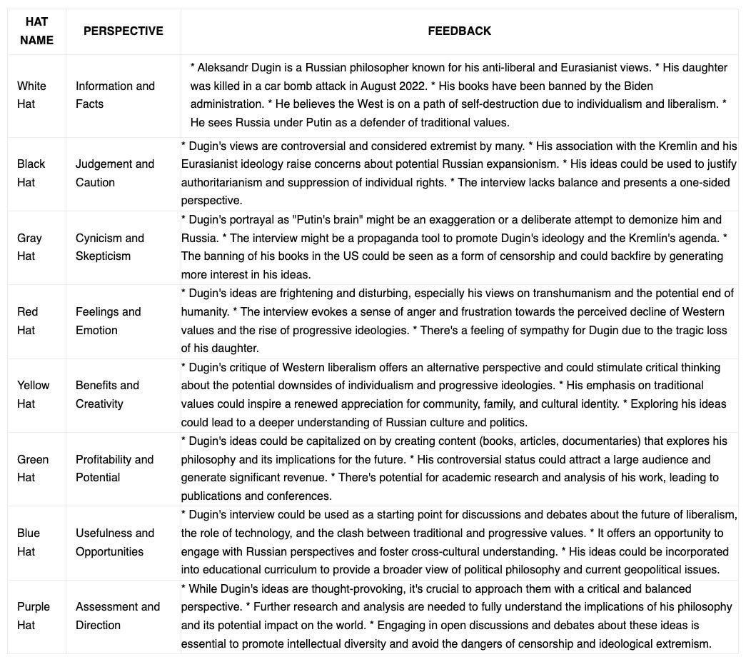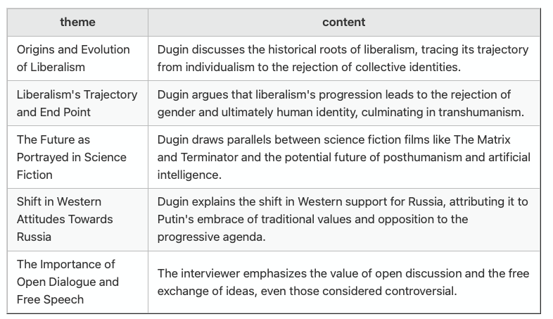 I have not seen the actual interview but from what I know of Dugin I can believe this is an accurate analysis of the discussion.